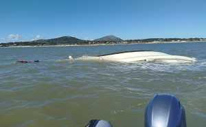 Inmediatamente zarpó desde el puerto de Piriápolis la lancha PNN 231 con 3 tripulantes de la subprefectura de ese balneario, arribando al lugar del siniestro a la hora 15.40, constatando que la embarcación estaba prácticamente hundida con sus dos tripulantes aferrados a una banda esperando ser rescatados.![]()