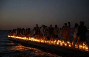 Además de la emblemática “sirena” posada en el ingreso al muelle, un grupo de nadadores de aguas abiertas acompañó el evento lanzándose al agua cuando se inició el encendido de centenares de velas, mientras que el artista Walter Blanco, también aportó lo suyo con una escultura en playa.