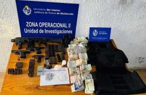 Allí se incautaron dos pistolas marca Glock (una con numeración y selector de disparos adulterados, y otra hurtada en 2017 en Canelones), una pistola marca Liberty calibre 22, dos chalecos antibala, y un accesorio para arma de fuego; un peine de 40 proyectiles y dos de 30; 7 cargadores calibre 9m.m. y 2 calibre 22m.m., 143 balas calibre 30, 45 calibre 9m.m., una calibre 44 y otra calibre 50.