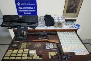 Pero también se descubrió un poderoso arsenal compuesto por 3 rifles marca Rossi .22 con mira telescópica; 1 rifle marca Mossberg Patriot calibre .308 con mira telescópica, y otro rifle calibre 22 largo, también con mira telescópica; 2 pistolas marca Sarsilmaz 9m.m. (una adulterada y otra modelo P320 con puntero laser).
