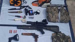 En el lugar, los efectivos identificaron a ambos sujetos, uno de 36 años y otro de 31 (ambos poseedores de antecedentes penales). Durante una inspección de la camioneta en la que se desplazaban, se incautaron una escopeta de caño corto calibre 32, un rifle de aire comprimido, un visor térmico, cuchillos, una motosierra y otros efectos.