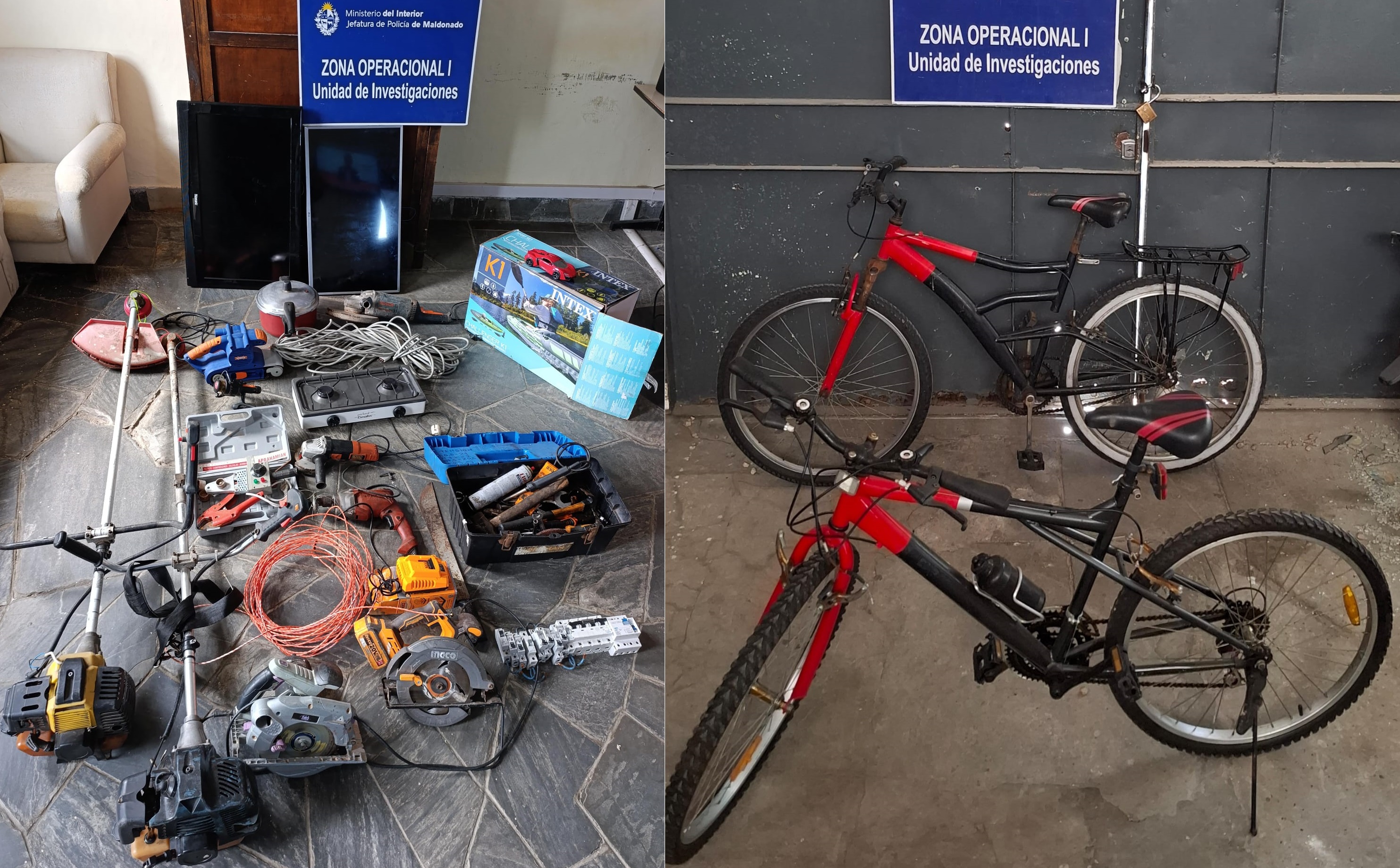 Realizada la inspección del lugar, se incautaron herramientas varias, electrodomésticos y dos bicicletas, en tanto se detuvo a José Mauricio Barboza Olivera, de 31 años y poseedor de antecedentes penales por delitos cometidos años atrás en la zona de Piriápolis, aunque nunca le pudieron imputar el delito de hurto.