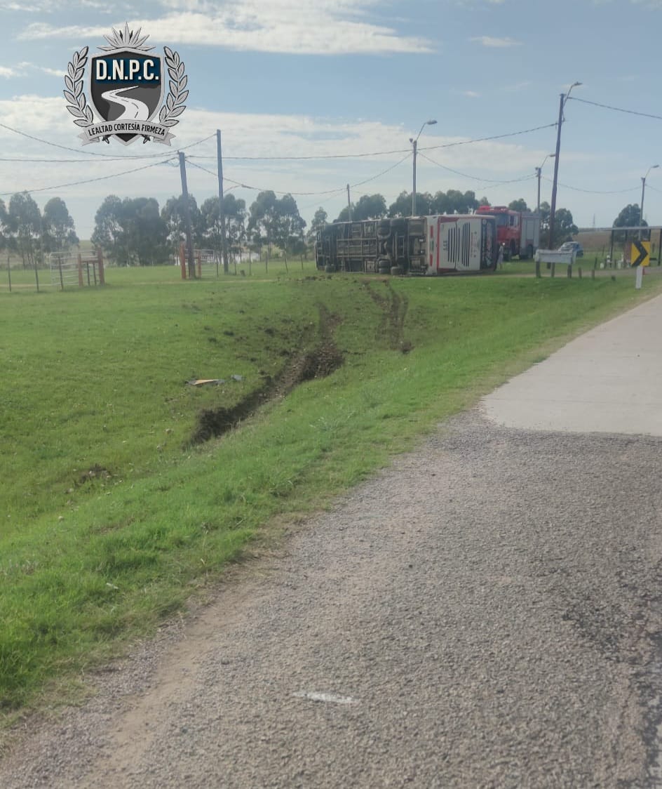 Policía Caminera reportó que un ómnibus de transporte internacional de pasajeros volcó en el kilómetro 242 de Ruta 3, con un saldo primario de ocho personas lesionadas.