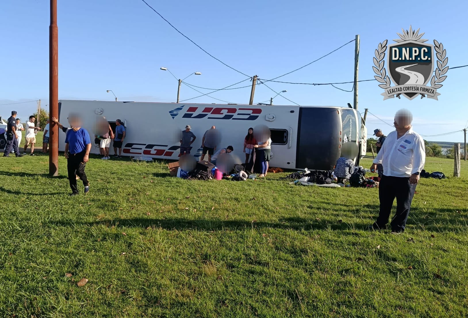 Se trata de un servicio que viajaba desde Cataratas del Iguazú hacia Montevideo con 47 pasajeros más tres tripulantes y, por razones aún desconocidas, despista y vuelca.