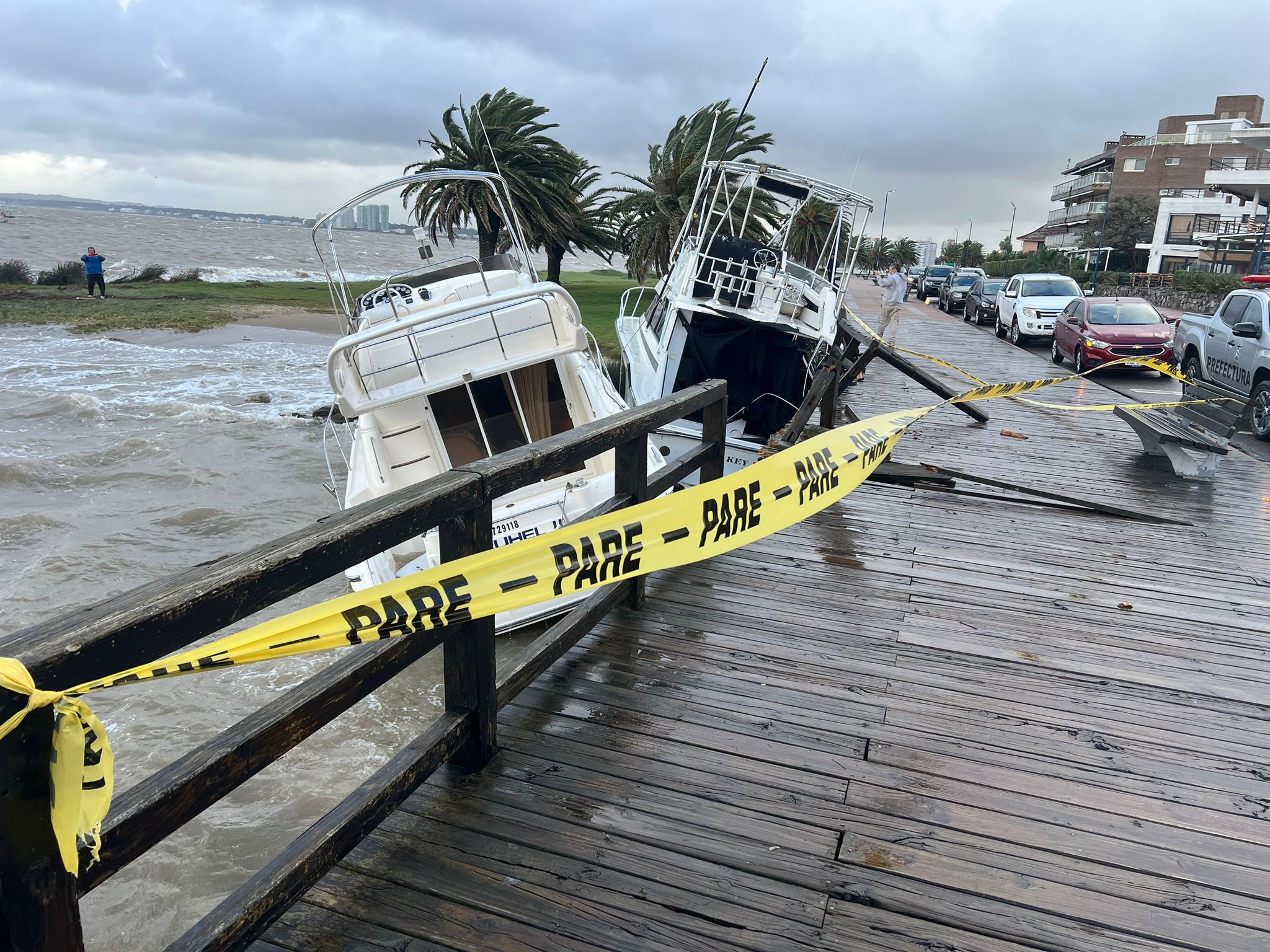 Además, en el Puerto de Punta del Este se soltaron dos embarcaciones de sus amarras, las cuales han golpeado y dañado la pasarela de madera, por lo que se ha colocado cinta amarilla para evitar la circulación en esa área.