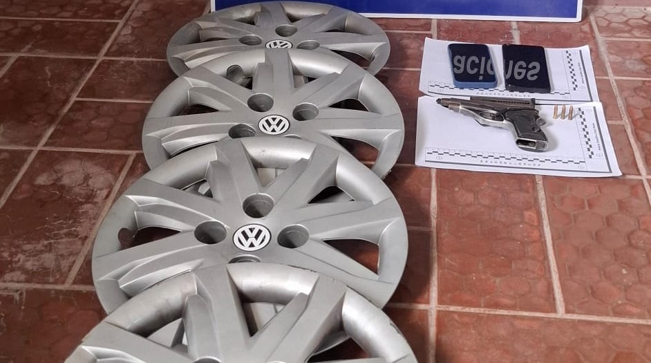 El adolescente, de 17 años, se domicilia en La Capuera, por lo cual la Fiscalía actuante ordenó otras diligencias y tramitó la orden de allanamiento para la casa del mismo, lo que se concretó este martes 30 de septiembre. Allí se incautó una pistola marca Bersa calibre .22LR y 4 cubre ruedas de una camioneta Volkswagen Saveiro.
