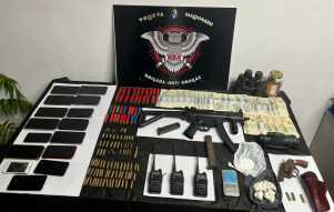 Además de la incautación de una balanza digital, un revólver calibre 38, una imitación de subfusil a Co2, 127 proyectiles de distinto calibre, 3 equipos de comunicación tipo handy, un visor nocturno, binoculares, dinero en efectivo y 15 teléfonos celulares, fueron detenidas 10 personas, 9 de las cuales tenían orden de detención.