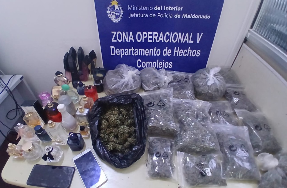 Asimismo, se incautaron: 1,200 kilos de marihuana, 28 perfumes usados y los dos teléfonos celulares de los intervenidos. Los dos hombres fueron trasladados a Maldonado, donde, al día siguiente comparecieron en el Juzgado Penal de 11° turno, siendo enviado a la cárcel uno de ellos, mientras que el otro quedó en libertad.