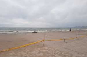 Madre y cría se encuentran protegidas por un cerco perimetral dispuesto por Prefectura para evitar cualquier tipo de situación que pueda afectar a los animales. La clave, subrayan los expertos, está en no molestar ni a la madre ni a la cría porque existe el peligro de que la hembra abandone a su cría y esta no sobreviva.