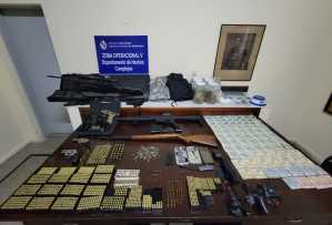 Pero también se descubrió un poderoso arsenal compuesto por 3 rifles marca Rossi .22 con mira telescópica; 1 rifle marca Mossberg Patriot calibre .308 con mira telescópica, y otro rifle calibre 22 largo con mira); 2 pistolas marca Sarsilmaz 9m.m. (una adulterada y otra modelo P320 con puntero laser).