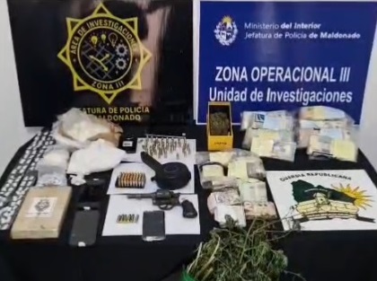 Bajo directivas de la Fiscalía de 4º turno de Maldonado, decenas de policías de varias dependencias llevaron adelante una serie de allanamientos en el asentamiento Brisas del Monte, al Este de centro de San Carlos, durante los cuales se incautó cocaína, marihuana, un arma de fuego, dinero y proyectiles de distintos calibres.